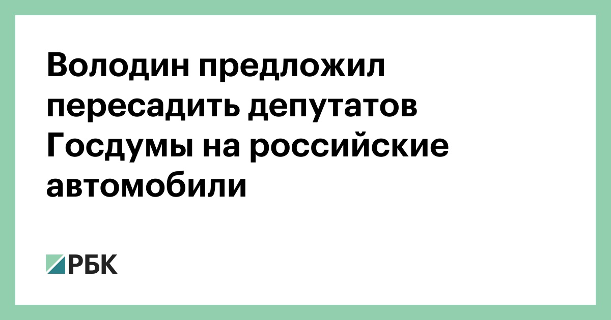 Депутатам Госдумы следует использовать в качестве служебных автомобили только отечественного производства. Об этом заявил председатель Вячеслав Володин, поддержав позицию главы Минфина Антона Силуанова по закупке для ведомства российских машин.
