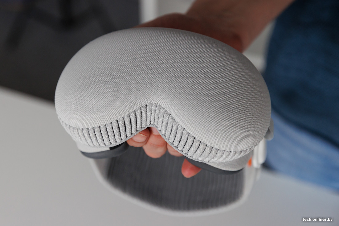 Дизайн Vision Pro вполне лаконичный, для него не характерны брутальность игровых VR-шлемов и аскетичная простота Meta Quest 3. Девайс Meta, к слову, воспринимается после устройства Apple как бедный родственник (в том числе из-за обилия металла в конструкции Apple). Vision Pro достаточно увесистый — до 650 граммов без аккумулятора, который, напомним, нужно носить с собой, сама же батарейка тянет на 350 граммов.