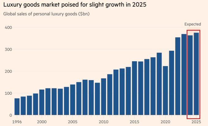 Рынок люкс-роскоши ожидает трудный год: по оценкам Bain & Company, мировые продажи предметов роскоши для личного пользования снизятся на 2% до 363 млрд евро в 2025 году. Это станет первым падением после финансового кризиса 2008 года. Только 33% брендов класса люкс увеличат свои доходы в 2024 году, по сравнению с 66% в прошлом году. Акции LVMH, главного luxury-холдинга упали примерно на 12% за последний год. @banksta