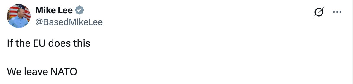 Сенатор США Майк Ли прокомментировал судебный процесс, в рамках которого ЕС готовит миллиардный штраф против платформы X Илона Маска.