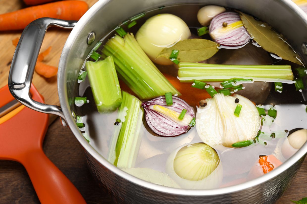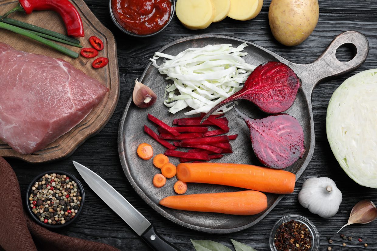1. Одним из главных секретов приготовления вкусного борща является бульон. Вы можете использовать любое мясо с костью и различный набор овощей. Всё зависит от того, какой вкус или оттенок вкуса вы хотите получить. Можно попробовать комбинировать ингредиенты — например, лук-порей с белым луком — а также заменять корнеплоды аналогами: стебель сельдерея на корень этого растения.