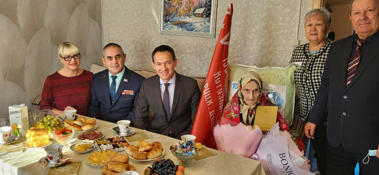 «С радостью и большой честью пришел поздравить вас с днем рождения. Примите букет цветов, поздравления от моего имени и подарки. Самое главное, хочу пожелать вам крепкого здоровья от всех альметьевцев. Спасибо вам огромное! Вы — настоящее поколение победителей. Дай бог, чтобы была возможность каждый год так поздравлять. Долгих лет вам жизни», — сказал градоначальник.