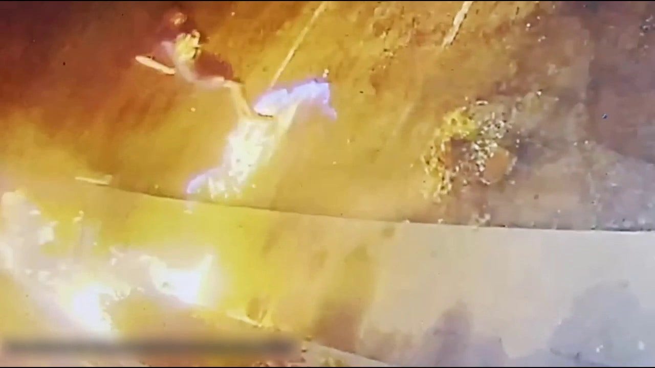 An arsonist who attempted to set a church on fire in Florida accidentally set themselves ablaze, a new video shows.