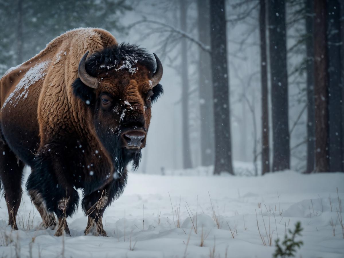 Бизоны - крупнейшие наземные млекопитающие Северной Америки - обитают в Йеллоустоне с доисторических времён. Численность популяции в парке составляет около 5400 особей. Несмотря на внешнюю спокойность, бизоны остаются дикими животными и могут проявлять агрессию при нарушении их личного пространства.