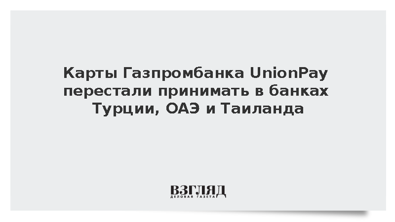Накануне Газпромбанк сообщил клиентам о возможных трудностях при использовании карт Union Pay за пределами России после введения санкций США.