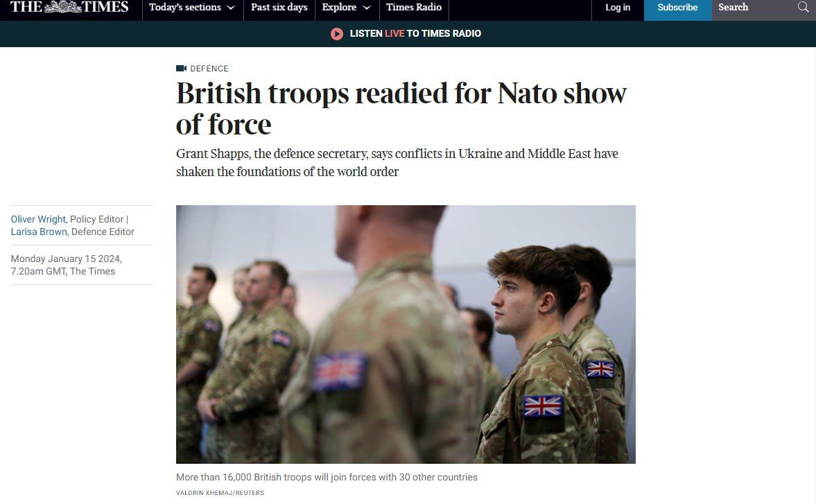 В этих учениях, которые станут «одним из крупнейших развертываний сил НАТО со времён окончания холодной войны», Британия будет участвовать вместе с 30 другими странами. В манёврах примут участие более 16 тыс. британских военных, т.е., как отмечает издание, пятая часть регулярной армии Великобритании.