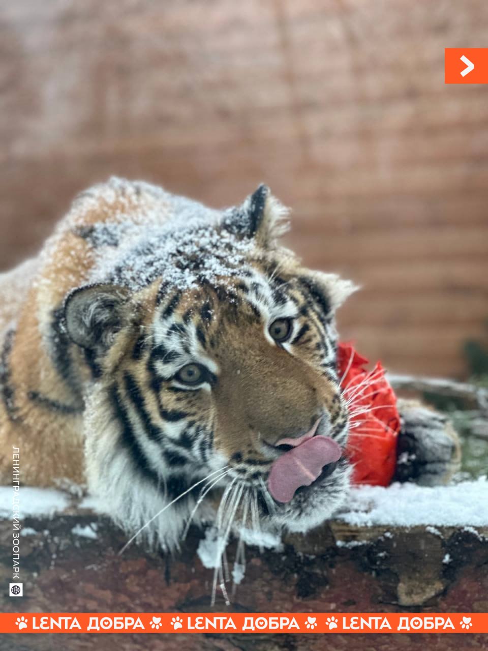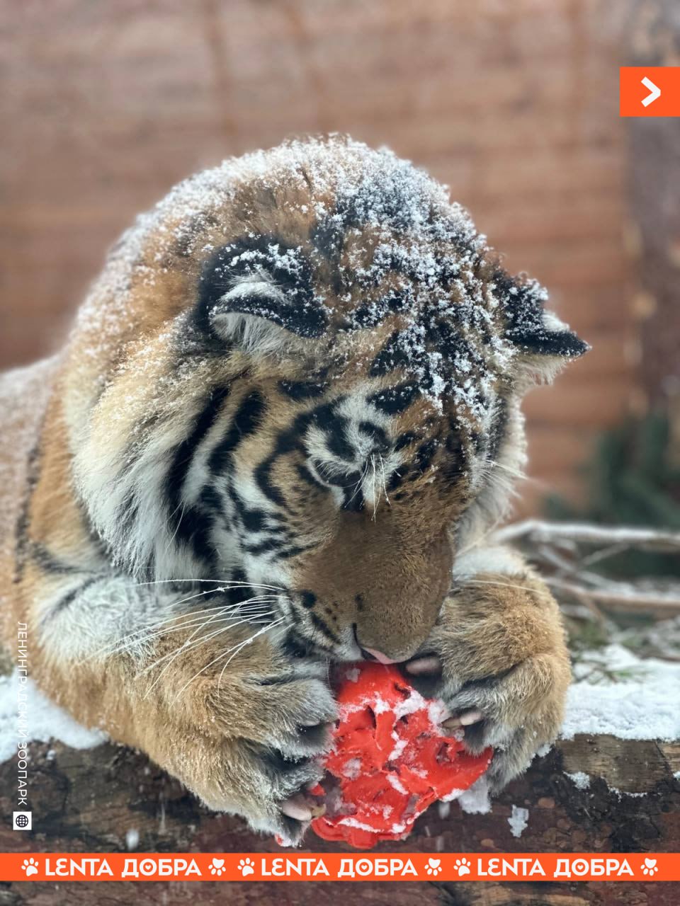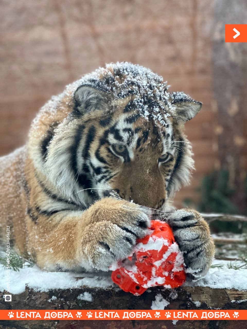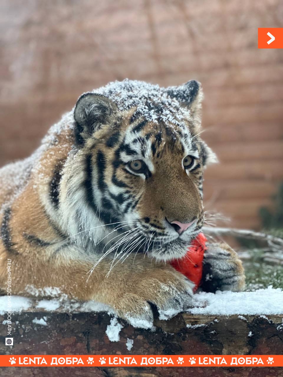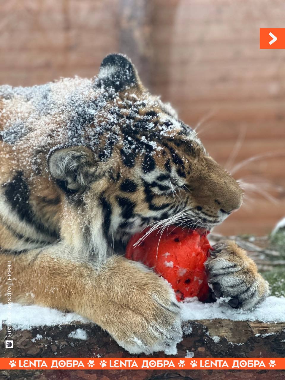 🐅 Тигрёнку Зевсу из Ленинградского зоопарка зима очень нравится.
