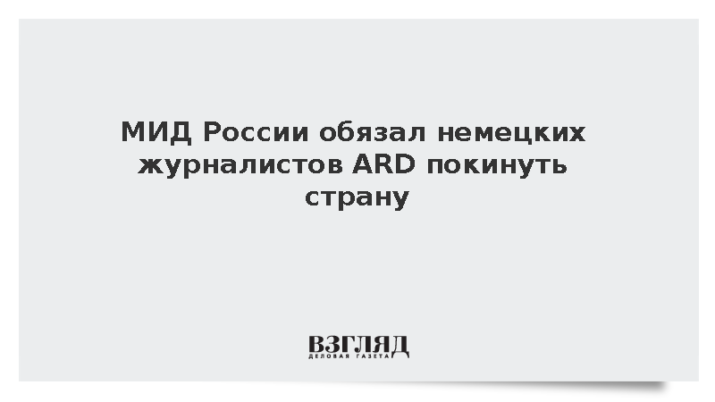 Немецким журналистам из издания ARD предписано покинуть Россию и сдать свои аккредитационные удостоверения, сообщила официальный представитель Министерства иностранных дел РФ Мария Захарова на брифинге, передает РИА «Новости». Это решение принято как зеркальная мера в ответ на закрытие властями Германии корпункта российского Первого канала.