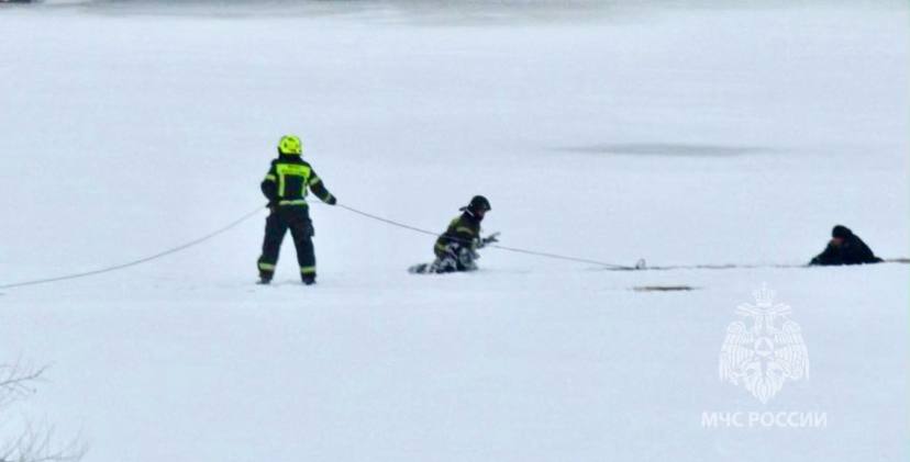 Попавшему в воду человеку пытались оказать помощь прибывшие сотрудники полиции, в итоге один из них тоже провалился под лед.