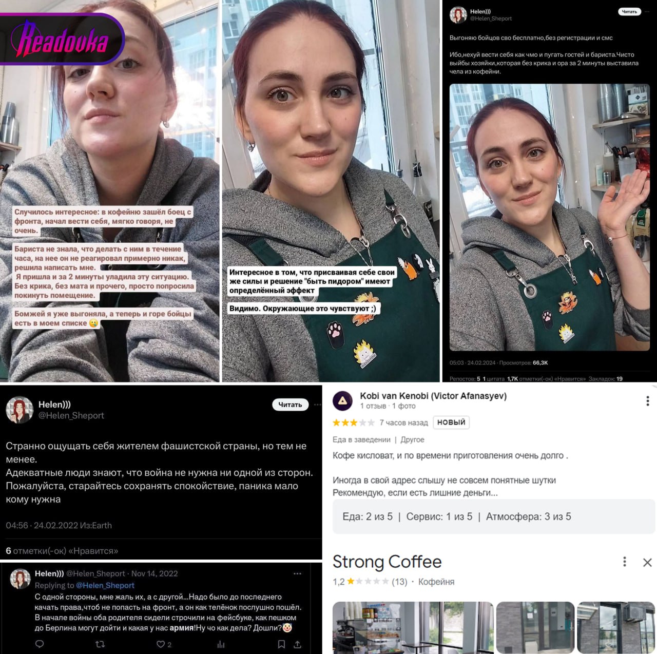 Правда, экс-бариста, а ныне владелица двух кофеен в Люберцах не учла, что даже если поведение «ветерана» и правда было не очень, то без внимания после завирусившегося треда не останутся и ее более старые высказывания. В которых упоминается то, что Россия — якобы фашистская страна, а заодно унижения и собственных родителей, и русской армии в целом. Впрочем, девушка хотела гражданское общество — она его и получила. Рейтинг ее заведений неуклонно падает на картах, где пользователи не стесняясь пишут о том, что отношение к посетителям там хамское. А самой Алене пришлось закрыть все страницы в соцсетях — ведь обратная связь ее совсем не обрадовала, хотя и не факт, что история не была полностью придумана ради понтов перед соевыми собратьями.