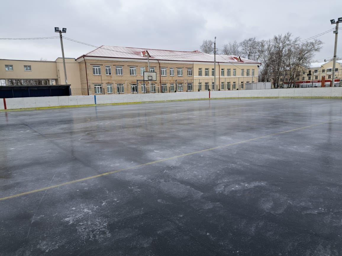 В этом сезоне началась подготовка площадки размером 30 на 40 метров на футбольном поле для самых маленьких. Там проводится утрамбовка и заливка льда.