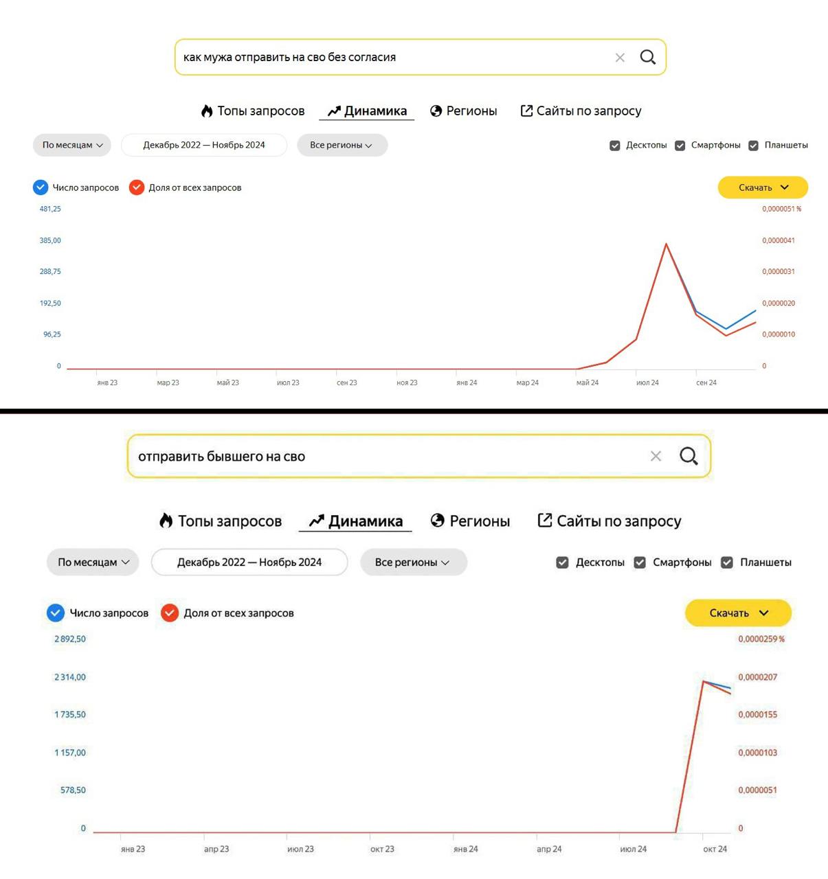 В России наблюдается резкий рост поисковых запросов, связанных с отправкой «мужей» и «бывших мужей на СВО».