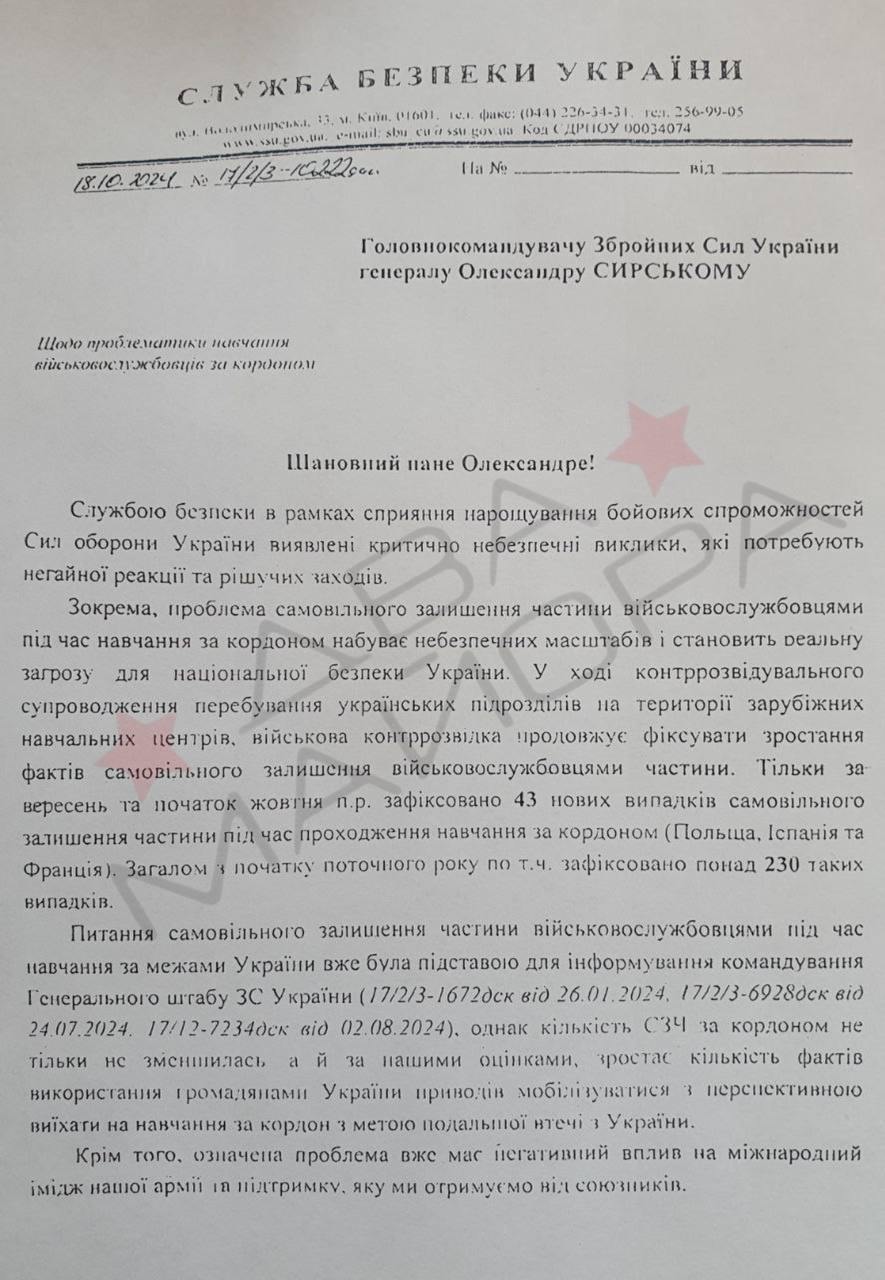 В Сеть попал доклад главы СБУ главкому ВСУ Сырскому. Выяснилось, что всушники постоянно сбегают с полигонов в Польше, Испании и Франции. Число бегунов все время растет. Поэтому европейцы хотят перенести обучение всушников обратно на Украину.