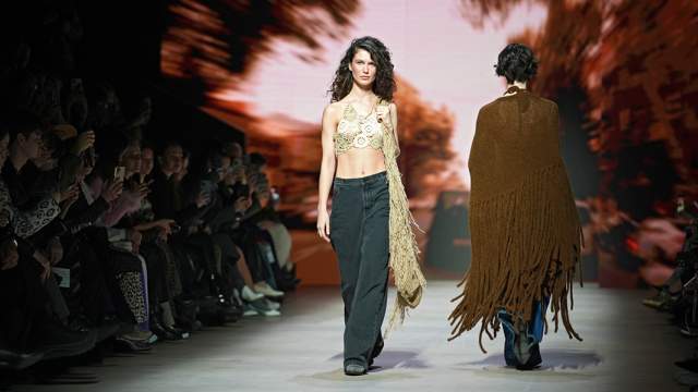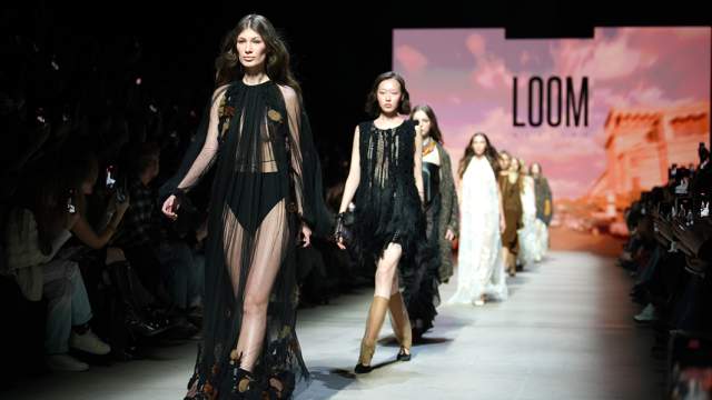 LOOM Weaving из Армении, впрочем, удивил — открыли показ коллекции «Urban Boho» модели в длинных «голых» платьях и в мини с небрежно сползшими на ногах чулками, словно под утро после долгой бессонной ночи. Если вечеринка и была, то где-то на ранчо. Главной деталью коллекции стала бахрома разной длины и из всевозможных тканей на юбках, платьях, туниках и сумках. На ногах — ковбойские сапоги. В то время как некоторые бренды продолжили тренд на ультра-короткие шорты, LOOM Weaving сделал акцент на форме — представил шерстяные шорты, напоминающие фасоном панталоны.