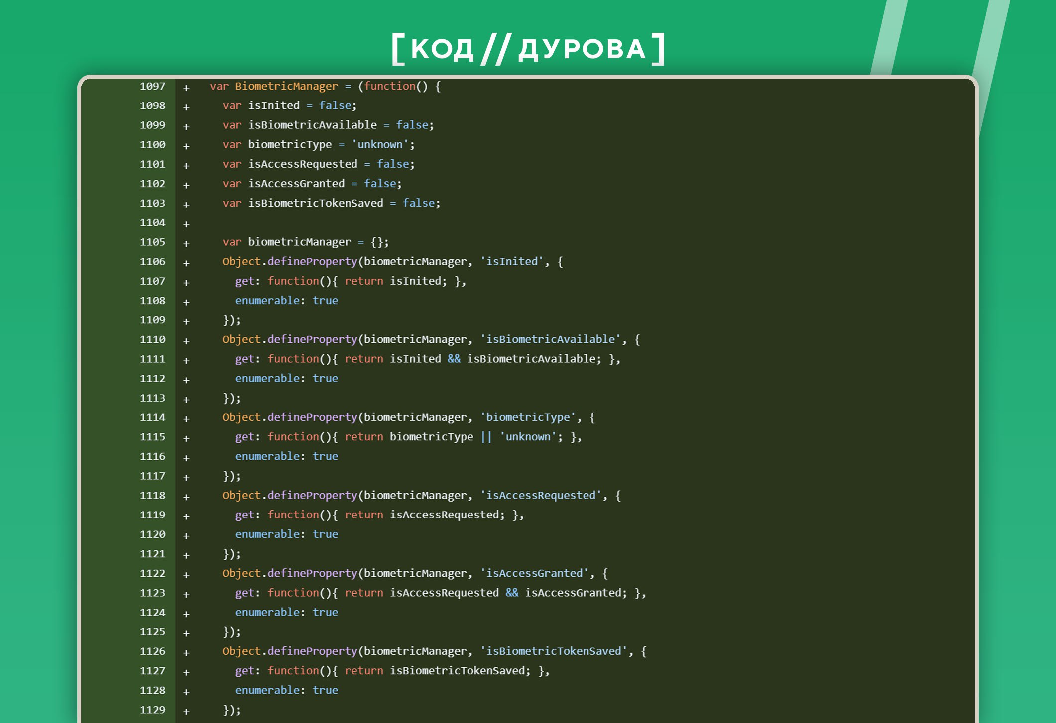 Π ΠΈΡΡ ΠΎΠ΄Π½ΠΎΠΌ ΠΊΠΎΠ΄Π΅ ΠΈΠ½ΡΡΡΡΠΌΠ΅Π½ΡΠ°ΡΠΈΡ Π²Π΅Π±-ΠΏΡΠΈΠ»ΠΎΠΆΠ΅Π½ΠΈΠΉ Telegram Π±ΡΠ»Π° Π½Π°ΠΉΠ΄Π΅Π½Π° ΡΡΠ½ΠΊΡΠΈΡ BiometricManager, ΠΊΠΎΡΠΎΡΠ°Ρ ΠΏΠΎΠ·Π²ΠΎΠ»ΠΈΡ ΠΏΠΎΠ΄ΡΠ²Π΅ΡΠΆΠ΄Π°ΡΡ Π»ΠΈΡΠ½ΠΎΡΡΡ ΠΏΠΎΠ»ΡΠ·ΠΎΠ²Π°ΡΠ΅Π»Ρ Ρ ΠΏΠΎΠΌΠΎΡΡΡ Π±ΠΈΠΎΠΌΠ΅ΡΡΠΈΡΠ΅ΡΠΊΠΈΡ Π΄Π°Π½Π½ΡΡ .