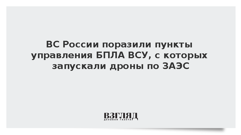 Оперативно-тактической авиацией, ударными беспилотниками, ракетными войсками и артиллерией группировок войск ВС России нанесено поражение пунктам управления беспилотных летательных аппаратов ВСУ с которых осуществлялись запуски дронов-камикадзе по Запорожской АЭС, сообщили в Минобороны.