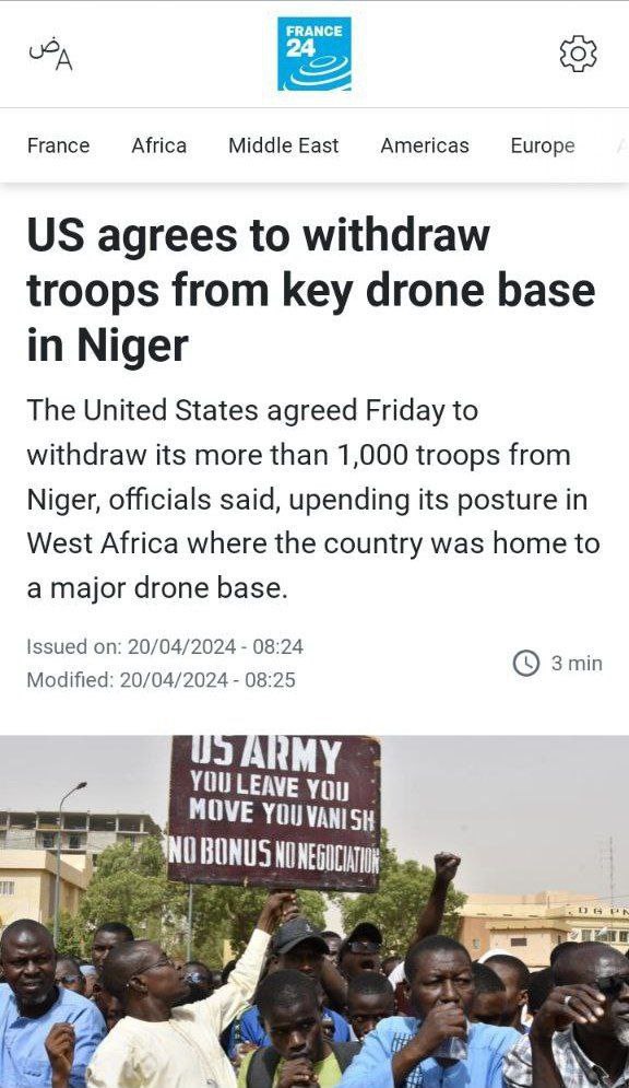 🇳🇪#Niger Нигер добился вывода американских войск со своей территории. На их место пришли русские⚠️☝️