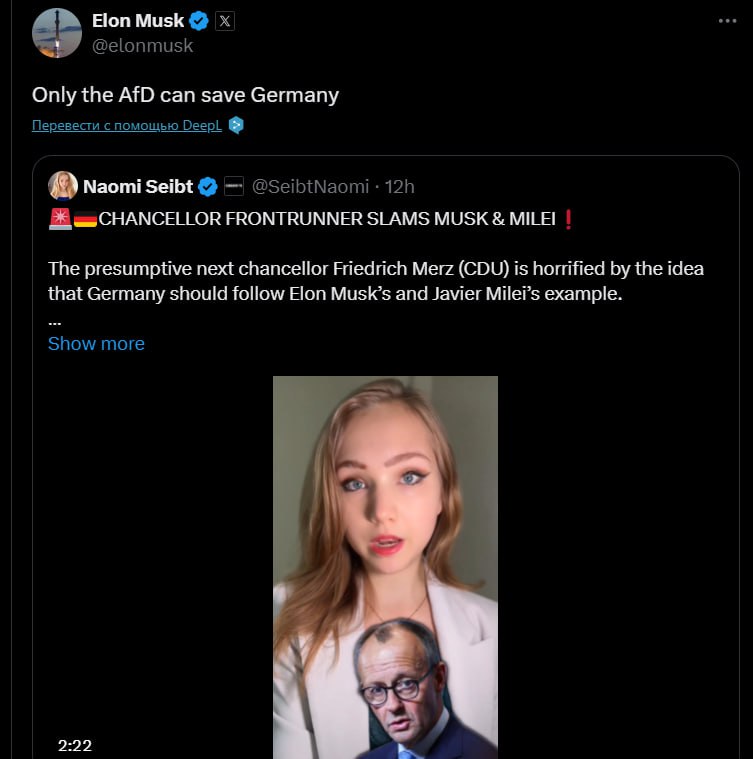 : Маск поддержал немецких оппозиционеров перед предстоящими выборами в парламент