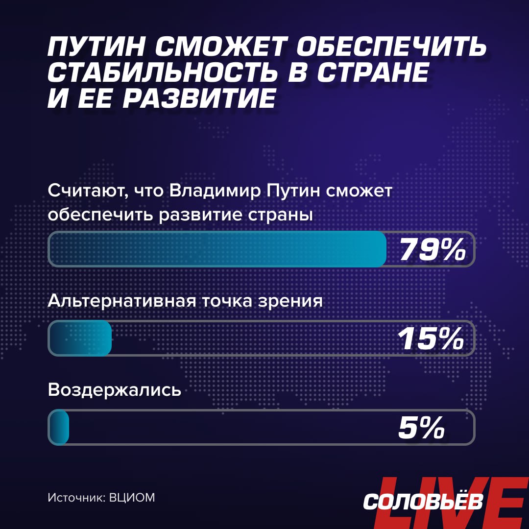 ❗️ВЦИОМ: 8 из 10 россиян полагают, что Путин сможет обеспечить стабильность в стране и ее развитие.