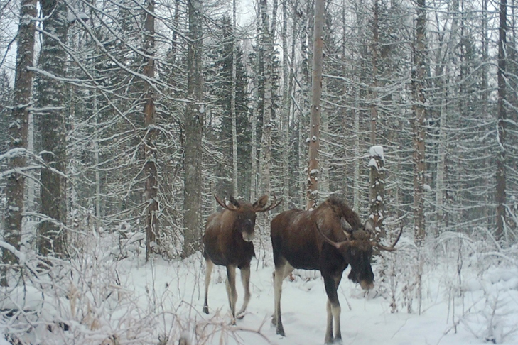 Специалистам заповедника «Васюганский» удалось запечатлеть редкое явление — парное сосуществование лосей. В фотоловушку в лесу под Новосибирском попали два товарища.