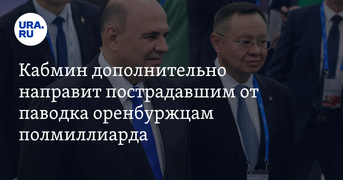 «Свыше 576 млн рублей будет дополнительно направлено Оренбургской области, пострадавшей от весеннего паводка», — говорится в сообщении правительства РФ. Распоряжение подписано премьер-министром РФ Михаилом Мишустиным по итогам заседания кабмина 23 мая. Ранее власти выделили на восстановление инфраструктуры пострадавших от стихии регионов пять млрд рублей, а также 490 млн рублей на социальные выплаты и первоочередные нужды.
