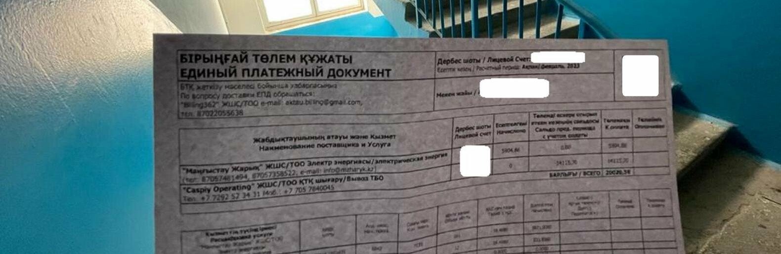 Напомним, с марта 2023 года в Актау ввели Единый платежный документ (электроэнергия, вывоз мусора, интернет, услуги домофона и КСК). ЕПД внедрили для упрощения процесса оплаты коммунальных услуг, улучшения обслуживания населения и совершенствования порядка расчетов.