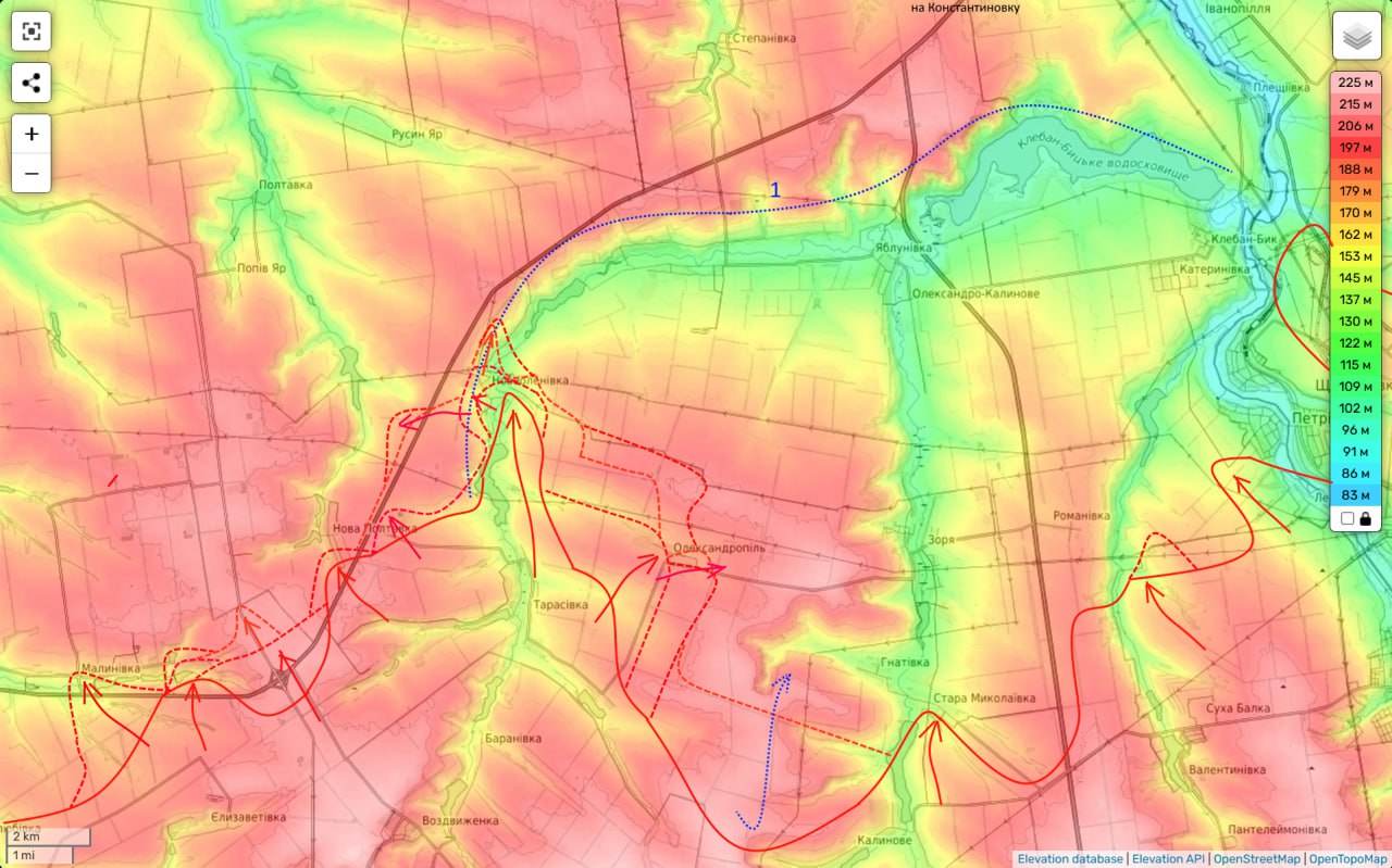 Если идти с запада на восток, то продолжилась зачистка Малиновки. В Новой Полтавке прошли на север метров 300. Также были подвижки севернее Новоеленовки.