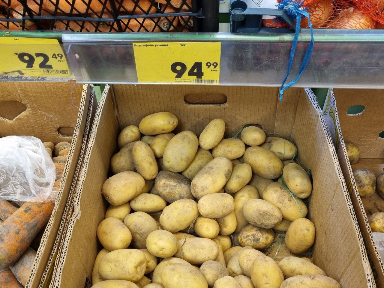 В «Магните» можно приобрести фасованный картофель за 35 рублей либо на вес — за 80 рублей. Также там продают плоды нового урожая за 94 рубля.