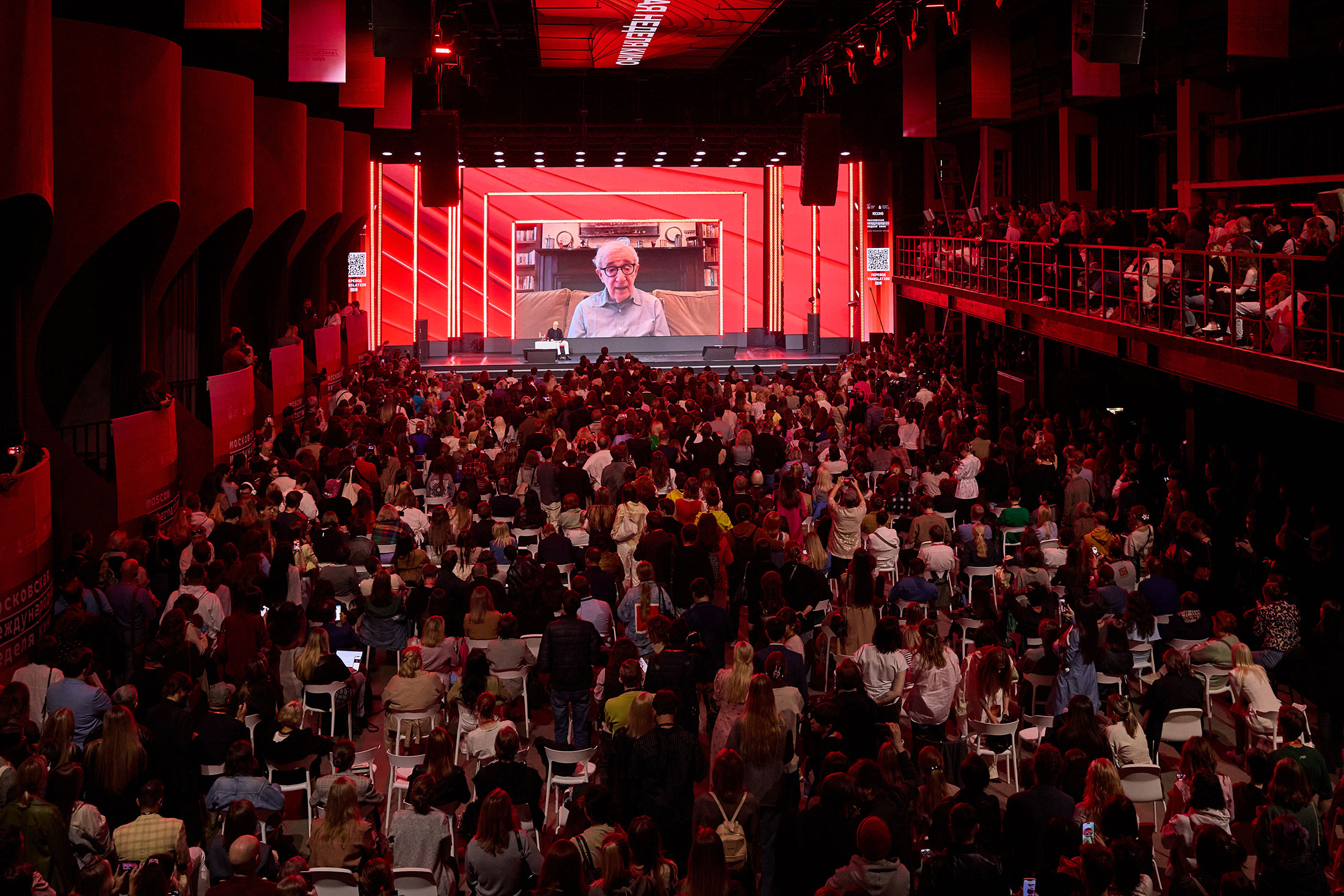 Участники мероприятия могли также послушать беседу Федора Бондарчука с четырехкратным обладателем премии «Оскар» Вуди Алленом и задать легенде мирового кинематографа вопросы. Знаменитый режиссер признался в любви к русской культуре.