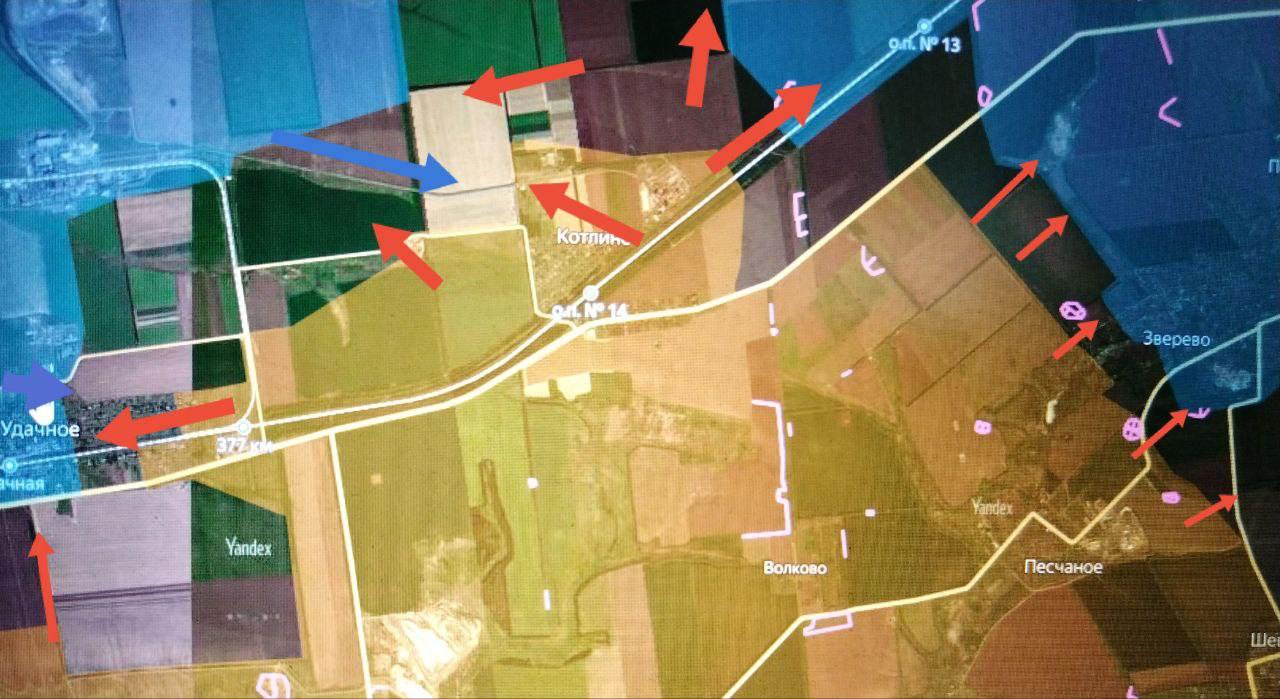 Наши штурмы продолжают восстанавливать положение в Удачном, зашли в первые строения станции, продвинулись южнее.