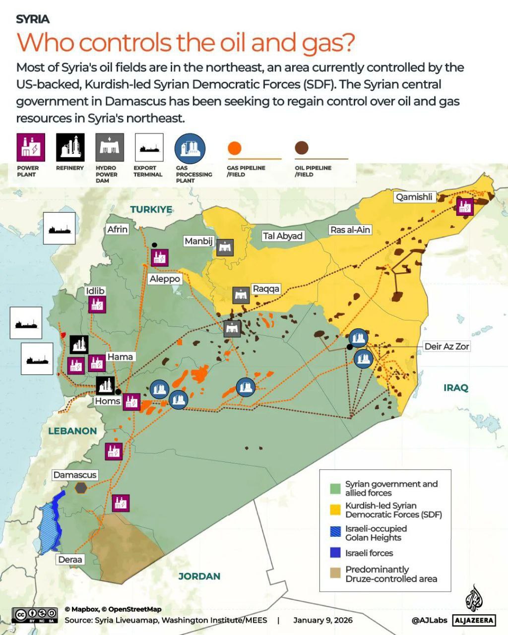 СДС во главе с курдами контролировали основные месторождения нефти и газа Сирии. Объемы добычи у Сирии небольшие по мировым меркам, но обеспечить страну энергией без этих ресурсов оказалось невозможно. Оплачивать поставки из Ирана и России было нечем. Чем закончилась попытка отбить месторождения у курдов со стороны российской ЧВК вы помните. С этой проблемой столкнулись и новые власти в Дамаске во главе с Джулани.