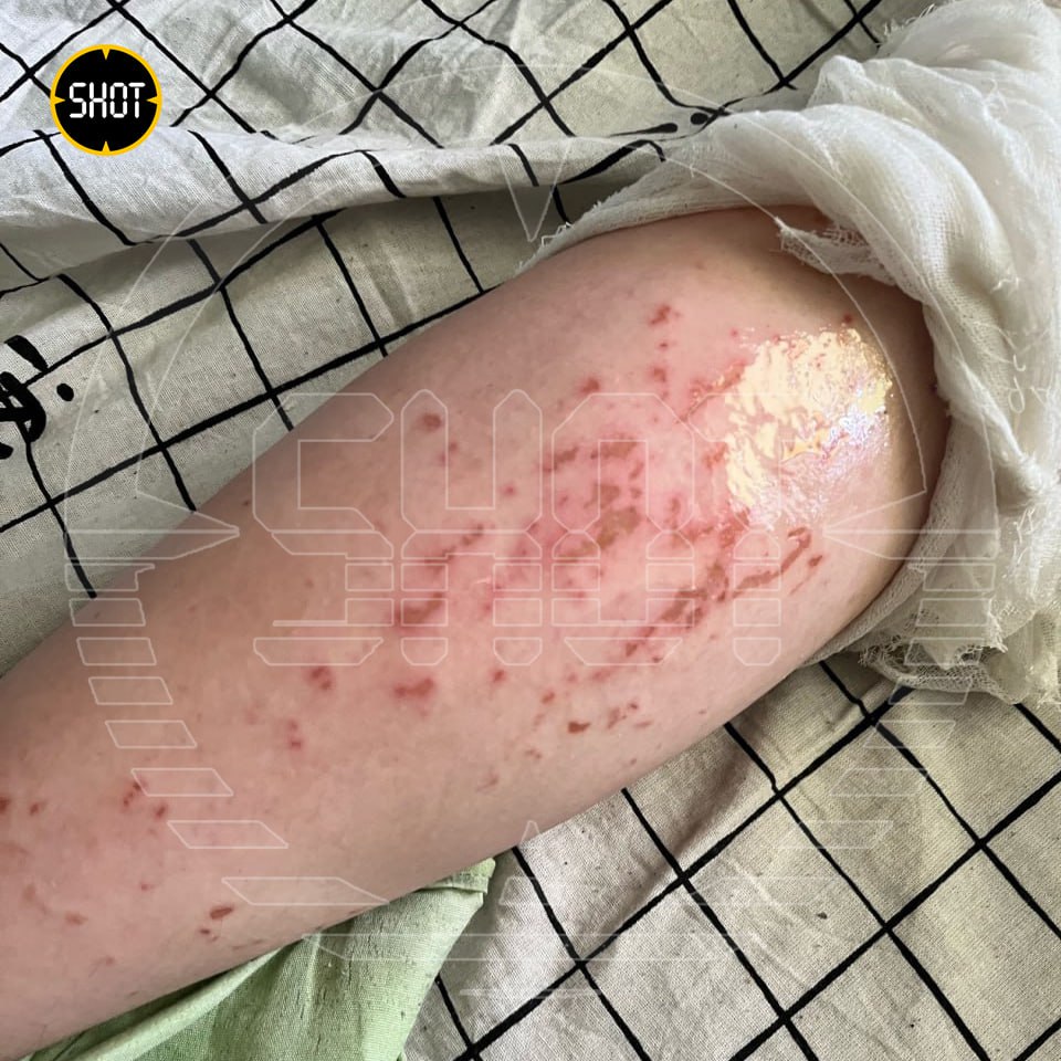 Еще одна жертва, 16-летняя Татьяна, возвращалась домой, когда незнакомый мужчина подкрался сзади и вылил на девушку какую-то жидкость. Она почувствовала острую боль и уже дома поняла – это кислота. Химикаты прожгли одежду (фото 3) и попали на ногу (фото 1 и 2).