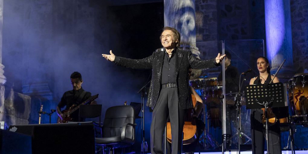 Pasadas las 22.00 horas, con cerca de 30 grados en la capital extremeña y solo seis meses después de atravesar un momento muy delicado de salud, Raphael reapareció. Le apuntaron los focos, levantó la mirada, saludó y Mérida le agasajó con el cariño y la admiración de siempre, a la que el artista respondió, también, como siempre, con un concierto solo a la altura de los más grandes en unos de sus lugares fetiche.