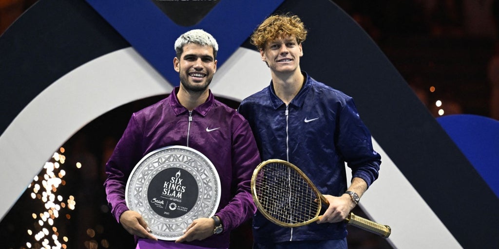 No hay clemencia en este Sinner tiránico con el servicio, con el revés, con la derecha. Se deja hace el último juego, un último suspiro de Alcaraz, pero no quiere ni ver peligrar su millonario cheque. Otros tres saques impecables, un derechazo y se abrazan en la red, entre bromas y risas, pero castigo del italiano en ese 6-2 y 6-4 en poco más de una hora. Es una final, un premio, el mayor del tenis y un mensajito para lo que llega. París, y la Copa de Maestros, y la Copa Davis. Tres citas en las que se volverán a poner a prueba en otra final.