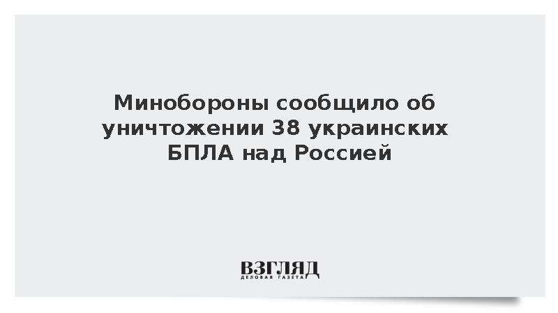 Минобороны сообщило об уничтожении 38 украинских БПЛА над Россией