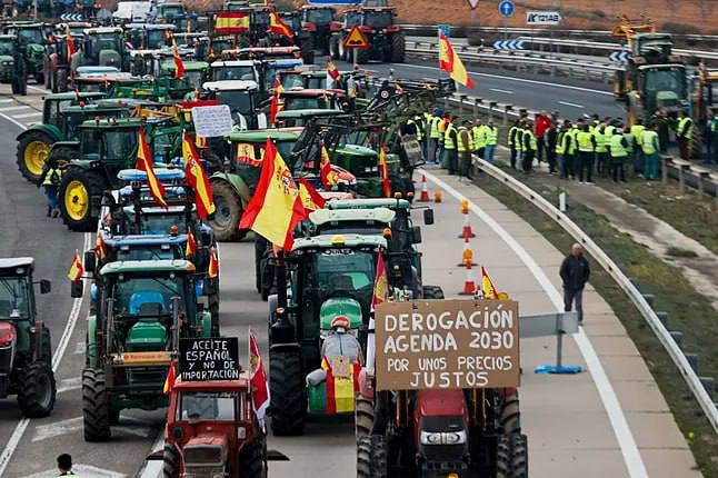 В Валенсии аграрии тракторами заблокировали въезд в город, а в Малаге скотоводы горящими покрышками перекрыли доступ к порту. Манифестации проходят в Барселоне, Арагоне, Каталонии и других регионах страны.