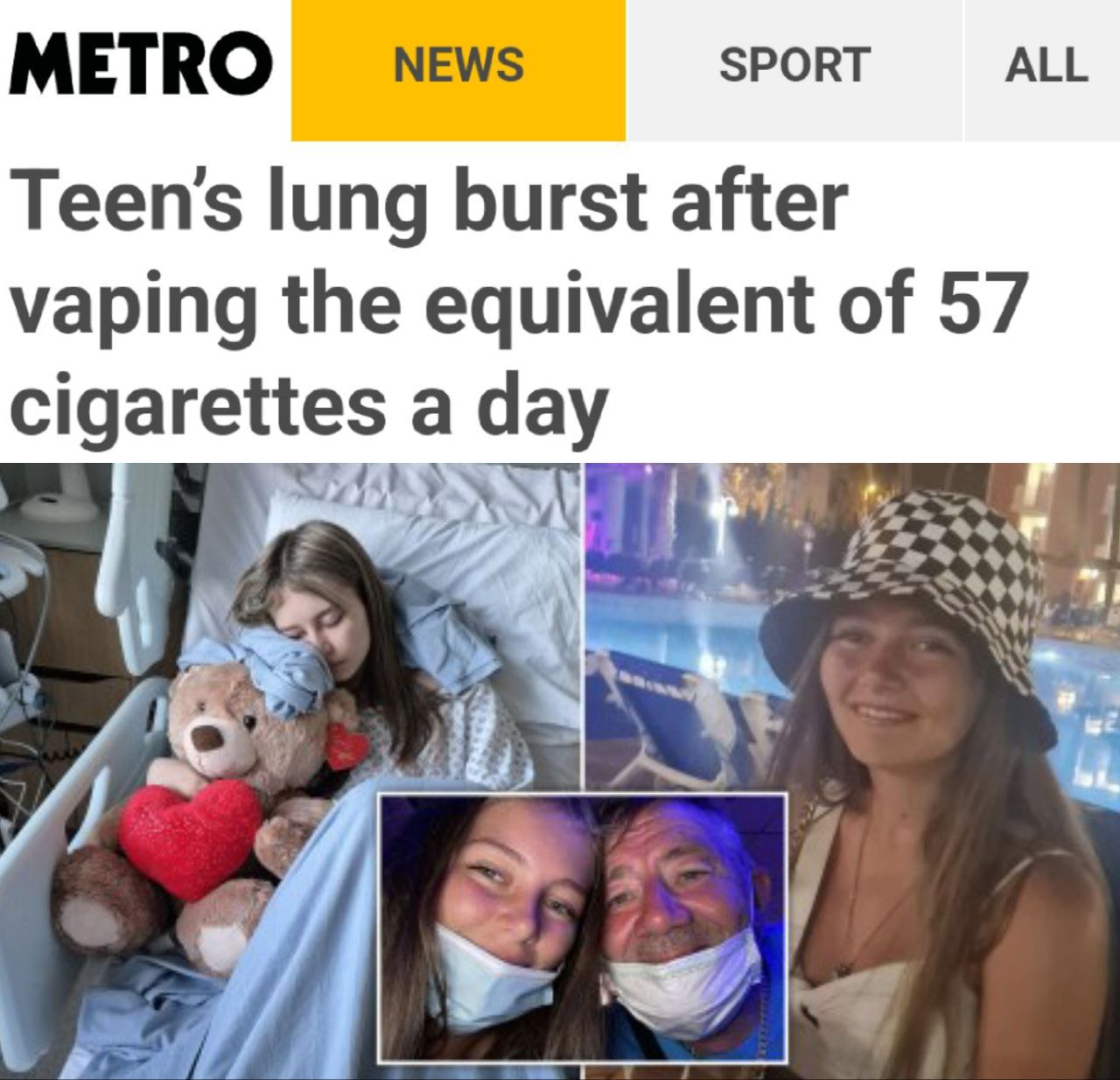 У 17-летней любительницы вейпа произошёл разрыв лёгкого