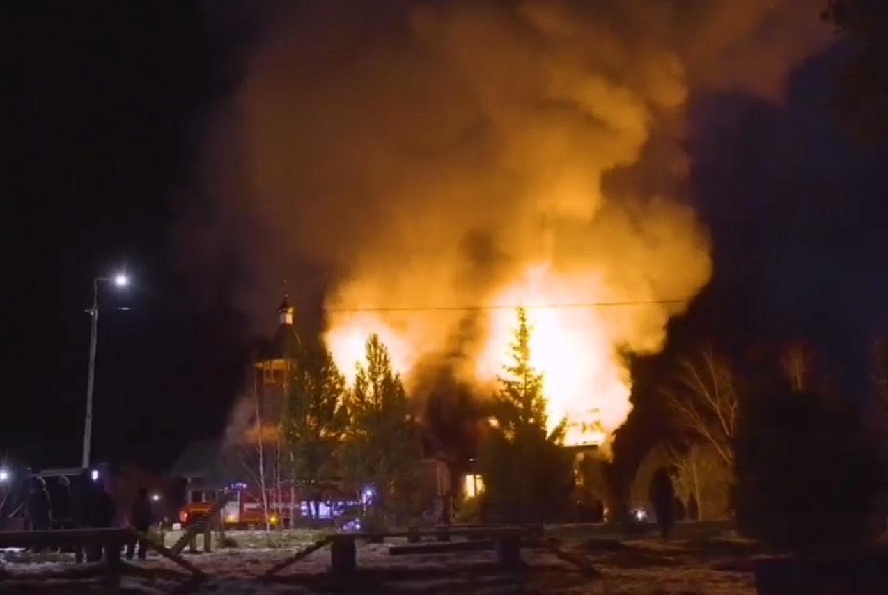 Единственный храм в Кедровом сгорел. Пожар начался вечером 3 ноября. Как сообщили в МЧС, огонь раскинулся на 100 квадратных метров. На месте работали три единицы техники и 10 человек.