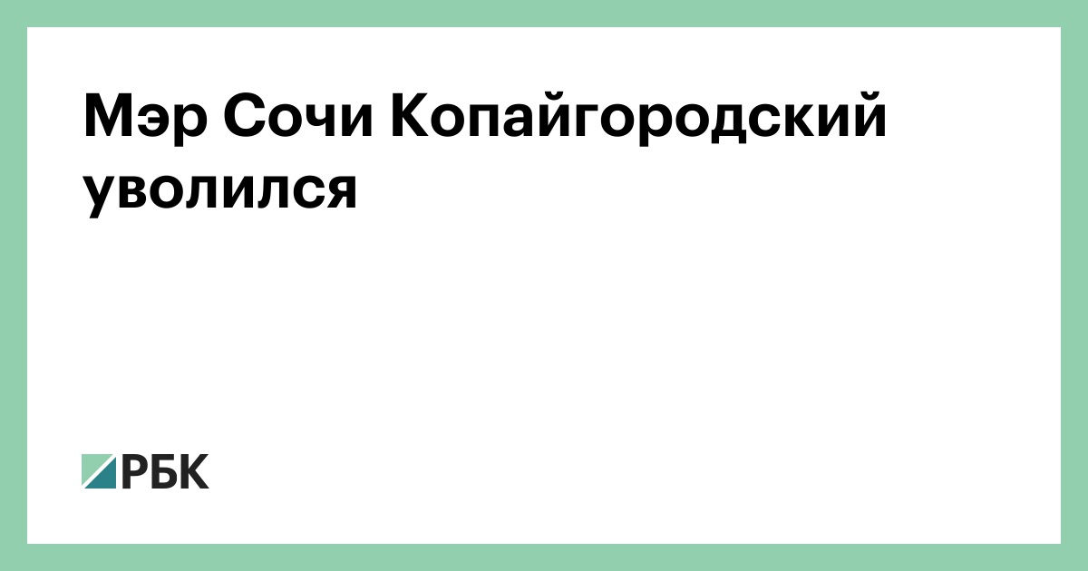 Глава города Сочи Алексей Копайгородский заявил о намерении уйти в отставку, губернатор Краснодарского края Вениамин Кондратьев это решение поддержал, сообщается на сайте администрации региона.
