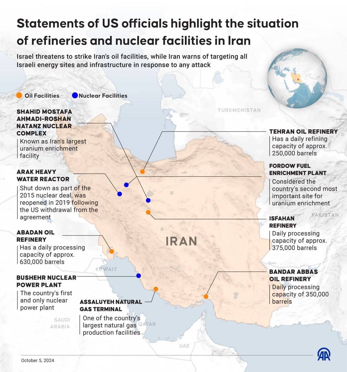 Израиль угрожает нанести удар по нефтяным объектам Ирана, в то время как Иран предупреждает о нацеливании на все израильские энергетические объекты и инфраструктуру в ответ на любую атаку.