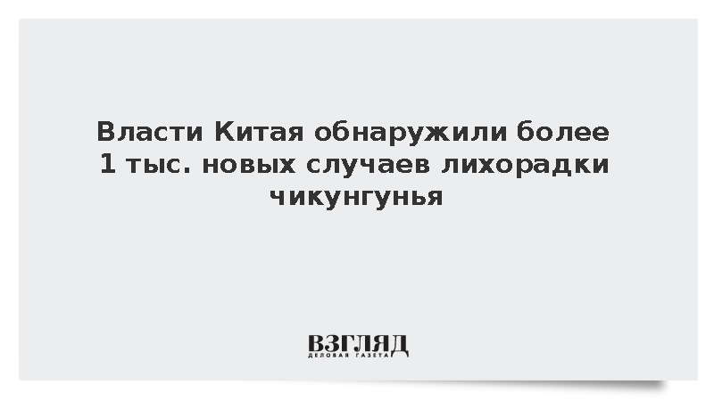 Как писала газета ВЗГЛЯД, власти Китая столкнулись с трудностями в борьбе с лихорадкой чикунгунья. Роспотребнадзор сообщил о рисках завоза лихорадки чикунгунья в Россию. За одну неделю на юге Китая выявили более 2,8 тыс. новых случаев заражения этим заболеванием.