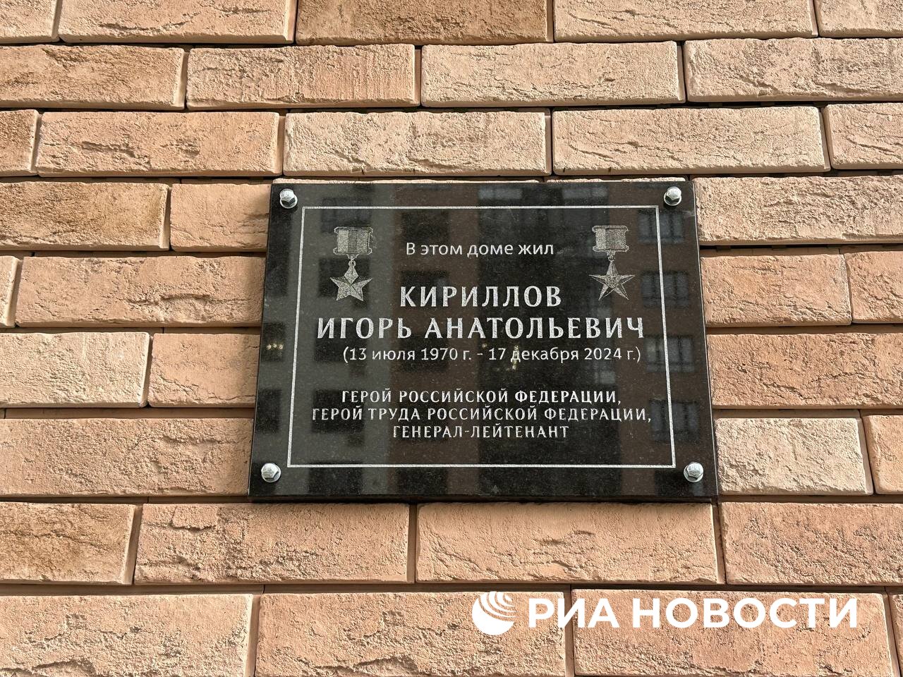 Памятная табличка установлена на месте гибели Героя Российской Федерации генерал-лейтенанта Игоря Кириллова в Москве, передает корреспондент РИА Новости.