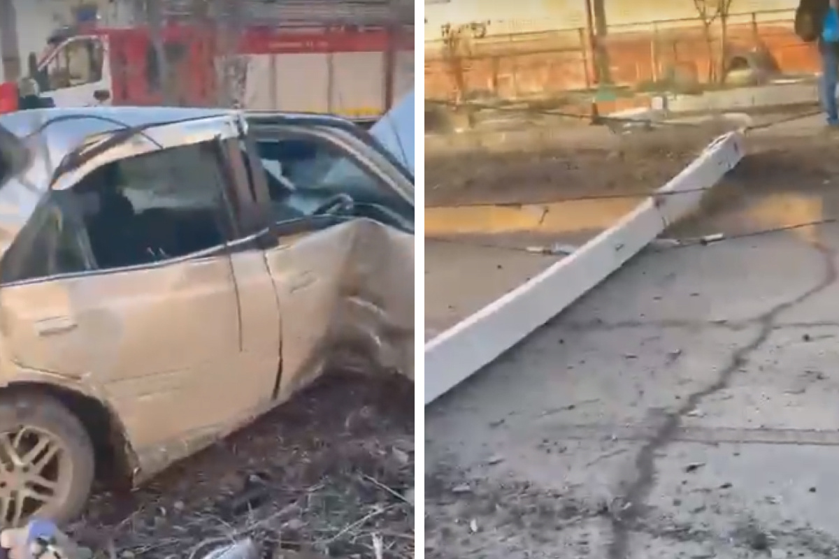 В сентября в Новосибирске водитель на скорости влетел в столб на Затулинке — момент ДТП попал на камеру.