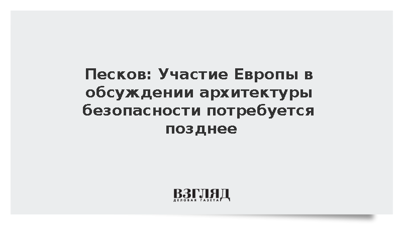 Песков подчеркнул: «Естественно, обсуждать систему безопасности в Европе – а говорить о гарантиях безопасности без системы безопасности в целом сложно – без участия европейцев практически невозможно».