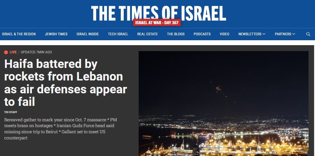 Израильские силы ПВО не смогли перехватить снаряды, сообщает Times Of Israel.