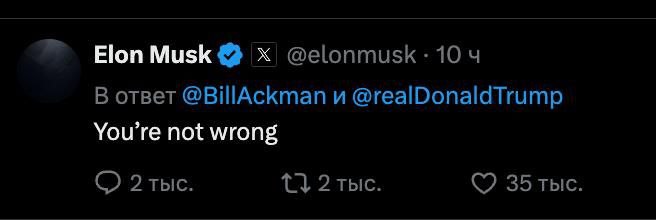 ΠΠΎ ΠΌΠ½Π΅Π½ΠΈΡ Π‘ΠΠ, ΠΠ°ΡΠΊ ΡΠΎΠ³Π»Π°ΡΠ΅Π½ Π½Π° ΠΏΠ΅ΡΠ΅ΠΌΠΈΡΠΈΠ΅ Ρ Π’ΡΠ°ΠΌΠΏΠΎΠΌ ΠΈΠ·-Π·Π° ΡΠΈΠ½Π°Π½ΡΠΎΠ²ΡΡ ΡΠΎΠΎΠ±ΡΠ°ΠΆΠ΅Π½ΠΈΠΉ. ΠΠΎΡΠ»Π΅ ΠΈΡ ΠΏΡΠ±Π»ΠΈΡΠ½ΠΎΠΉ ΠΏΠ΅ΡΠ΅ΠΏΠ°Π»ΠΊΠΈ Π°ΠΊΡΠΈΠΈ Tesla Inc. ΡΠΏΠ°Π»ΠΈ Π½Π° 14%, Π° Π»ΠΈΡΠ½ΠΎΠ΅ ΡΠΎΡΡΠΎΡΠ½ΠΈΠ΅ ΠΠ°ΡΠΊΠ° ΡΠΌΠ΅Π½ΡΡΠΈΠ»ΠΎΡΡ Π½Π° 34 ΠΌΠΈΠ»Π»ΠΈΠ°ΡΠ΄Π° Π΄ΠΎΠ»Π»Π°ΡΠΎΠ². Π’Π°ΠΊΠΆΠ΅ ΠΎΠΆΠΈΠ΄Π°ΡΡΡΡ Π°Π½Π°Π»ΠΎΠ³ΠΈΡΠ½ΡΠ΅ ΠΏΠΎΡΠ»Π΅Π΄ΡΡΠ²ΠΈΡ Π΄Π»Ρ SpaceX.