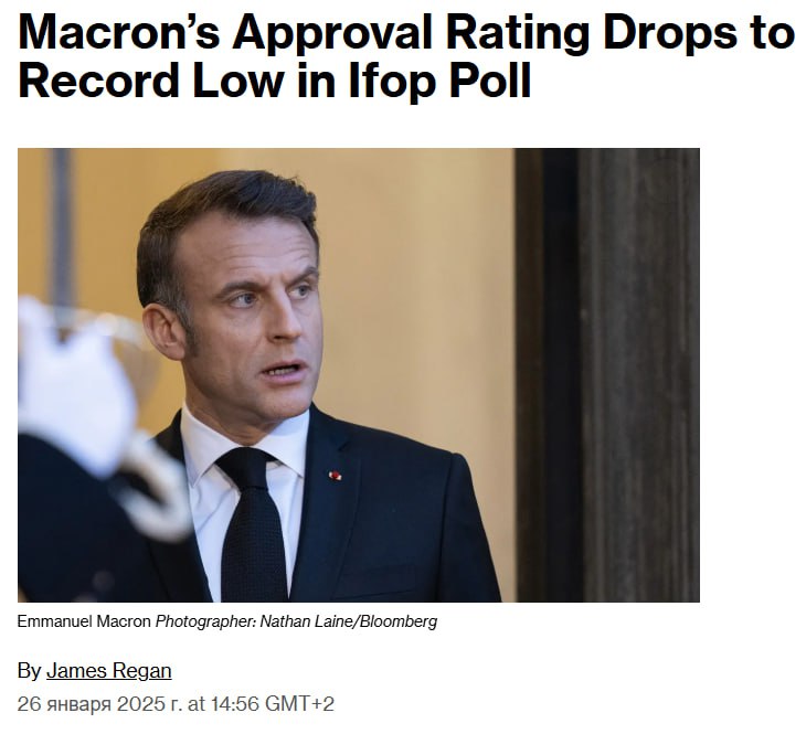 Рейтинг одобрения Макрона достиг рекордно низкого уровня с момента его вступления в должность в 2017 году, — Bloomberg