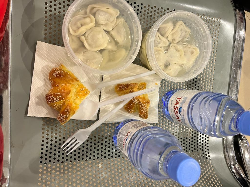 В аэропорту Тараза сообщили, что город у них маленький, и поэтому в ночное время все закрыто. Покормить людей ночью не представлялось возможным.