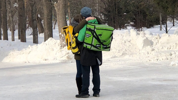 В 2019 году на всю страну разлетелась фотография обнимающейся пары курьеров. Парня и девушку из конкурирующих компаний «Яндекс.Еда» и Delivery Club сняли на улице Новосибирска. Пару окрестили современными Ромео и Джульеттой. Тогда корреспондент НГС отыскал курьеров и узнал, как они познакомились и чего ждут от поездки во Францию.