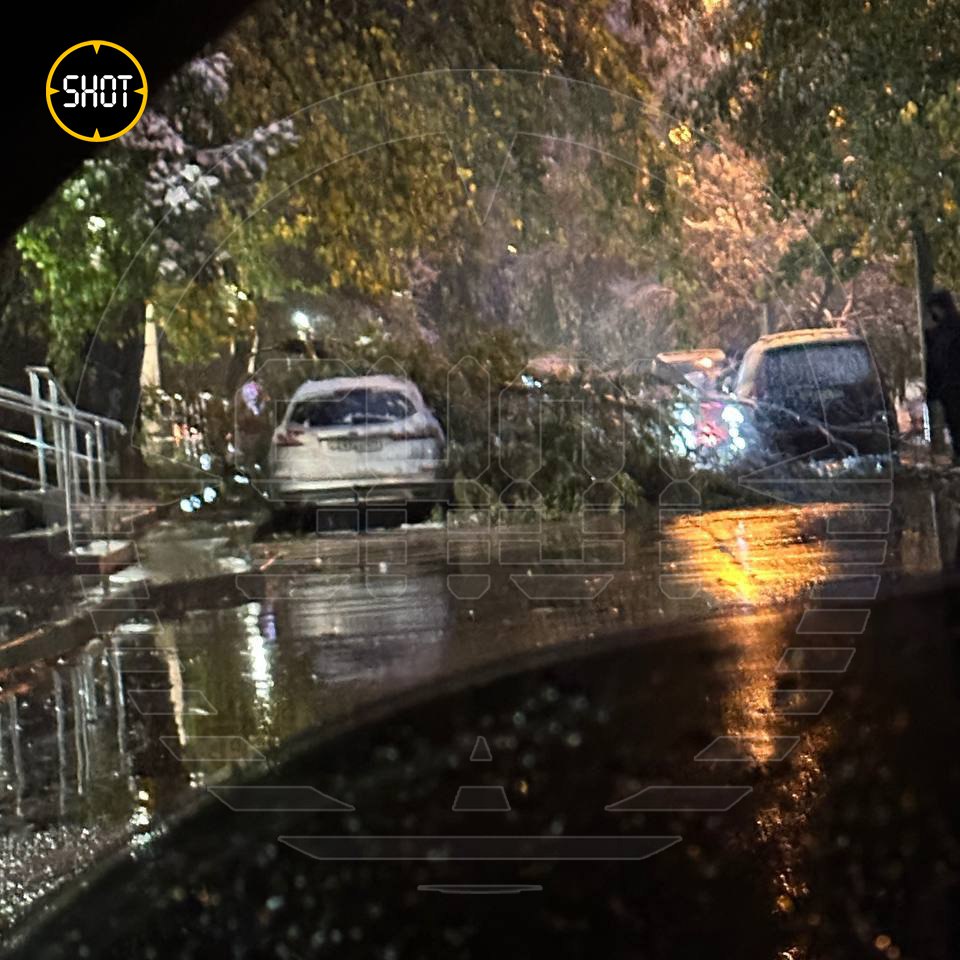 Помимо того, в разных частях столицы деревья упали на несколько автомобилей.